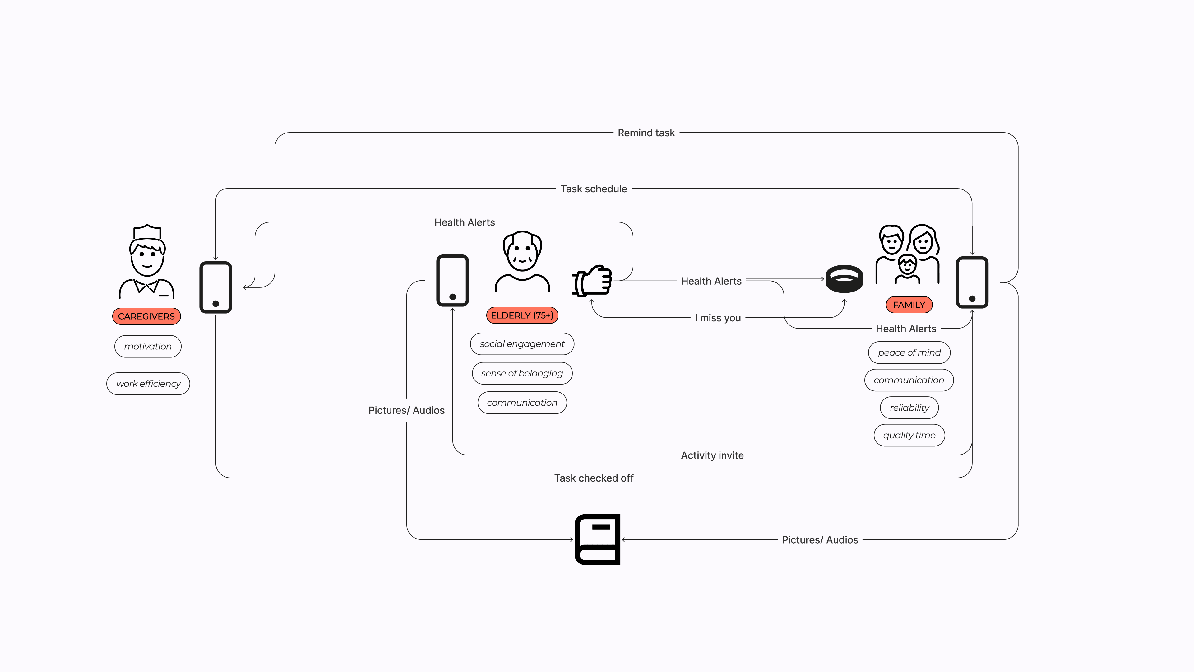 How might we design a supportive system that enhances the quality of life for geriatrics aged 75+, their families, and caregivers by addressing their social and mental well-being within their home environments?