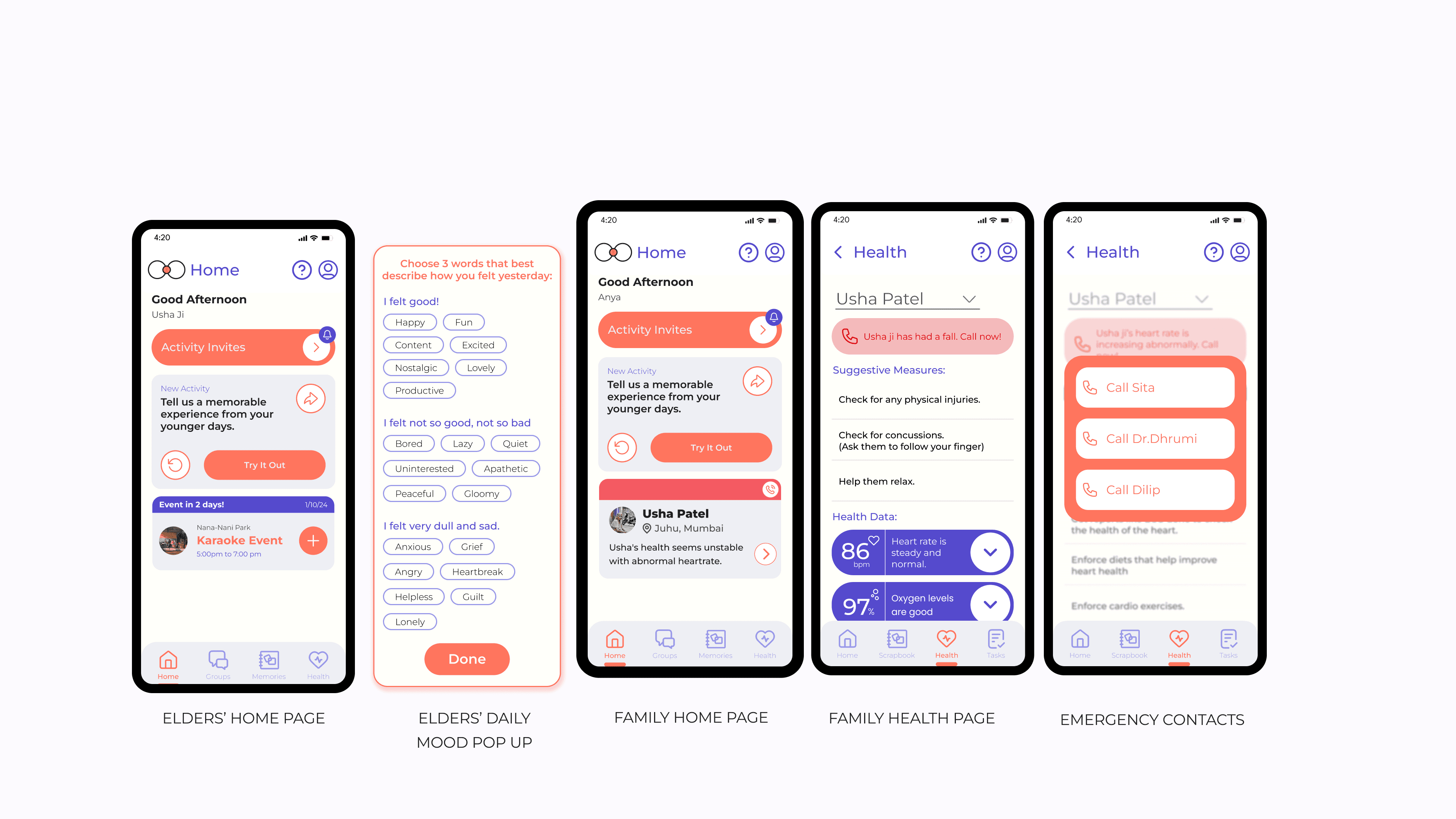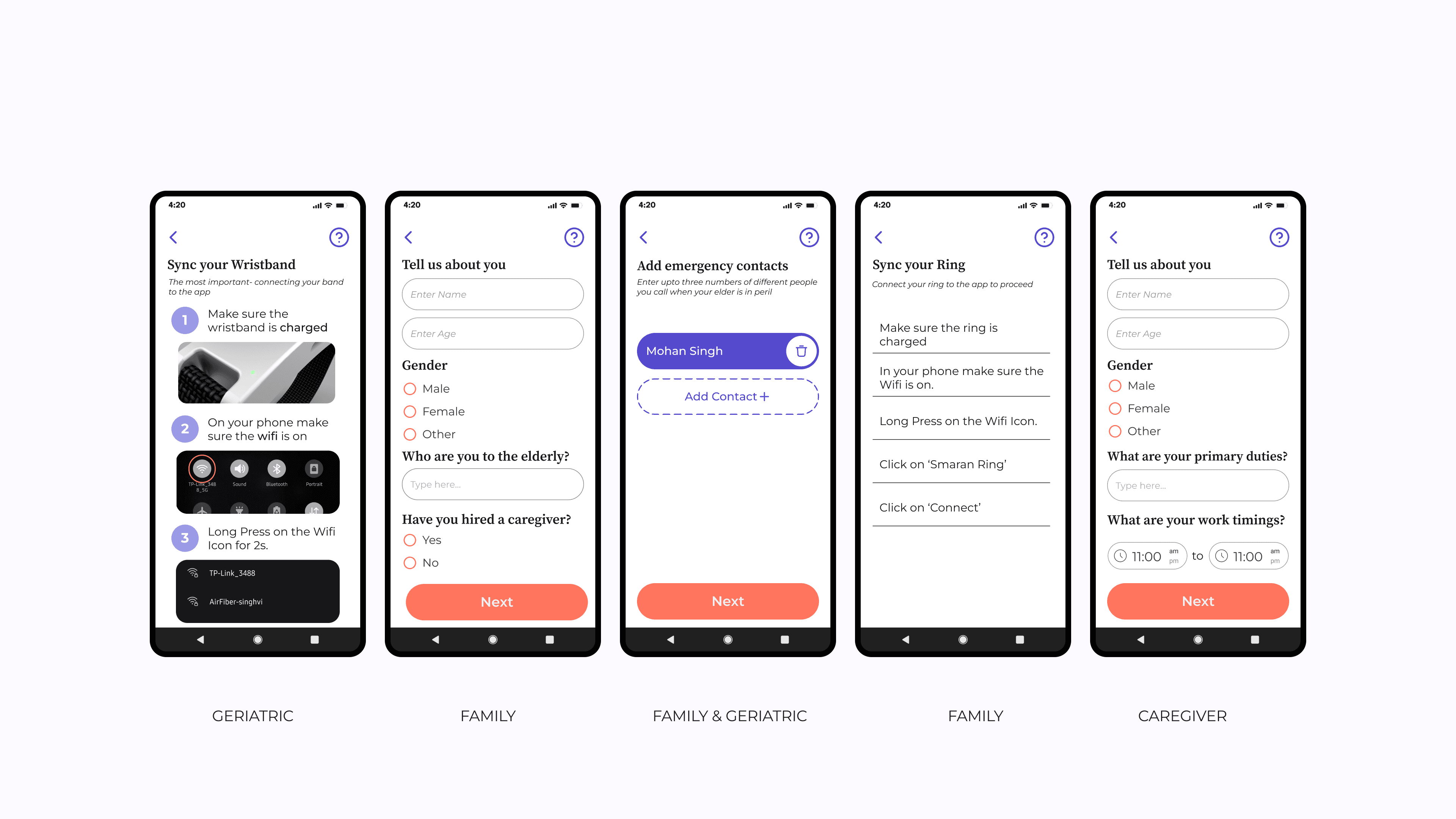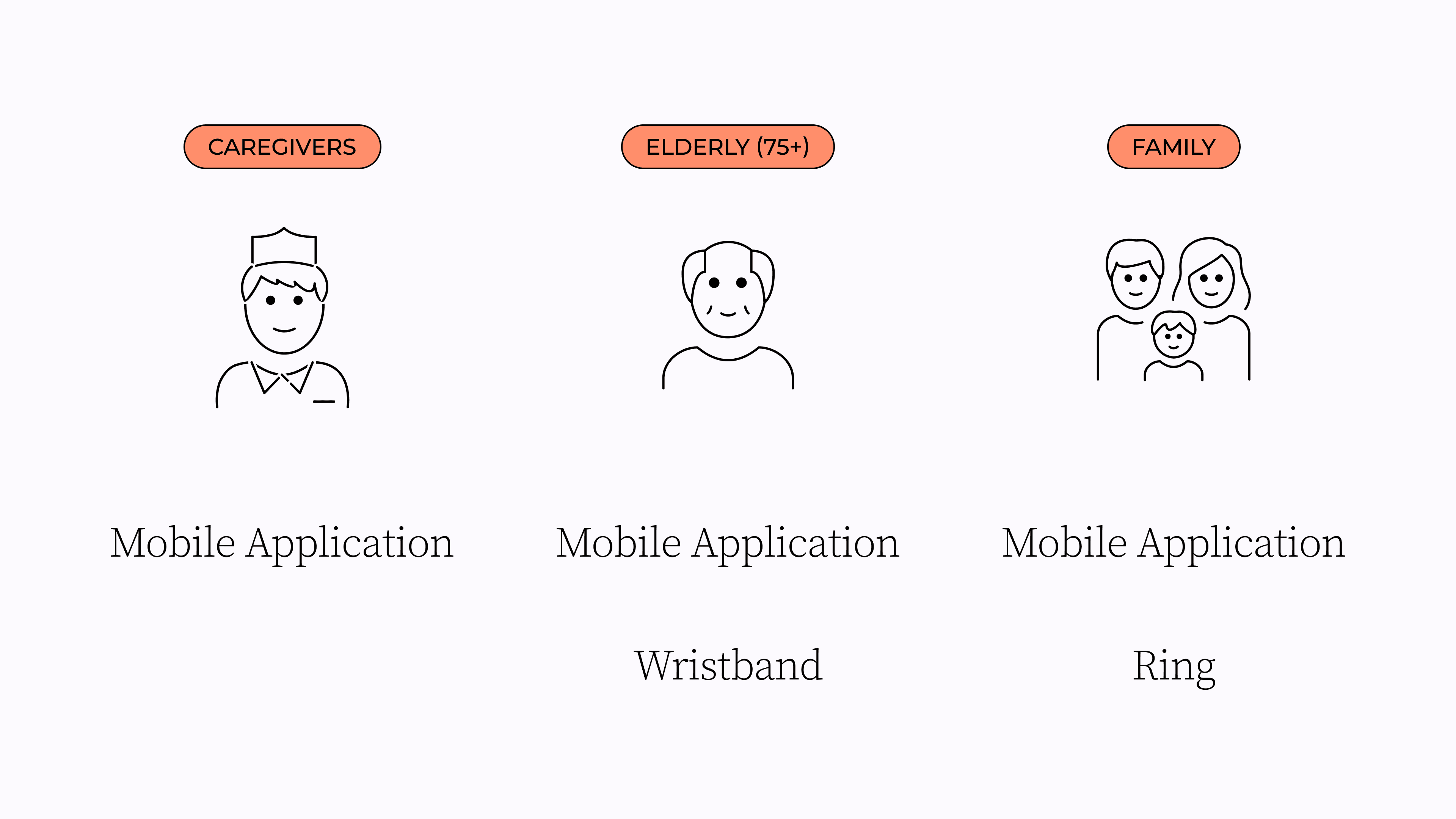 A system for designed for the stakeholders and each has a mobile application and the elderly have a wristband similarly the family has a ring which is connected to the wristband the elderly is wearing