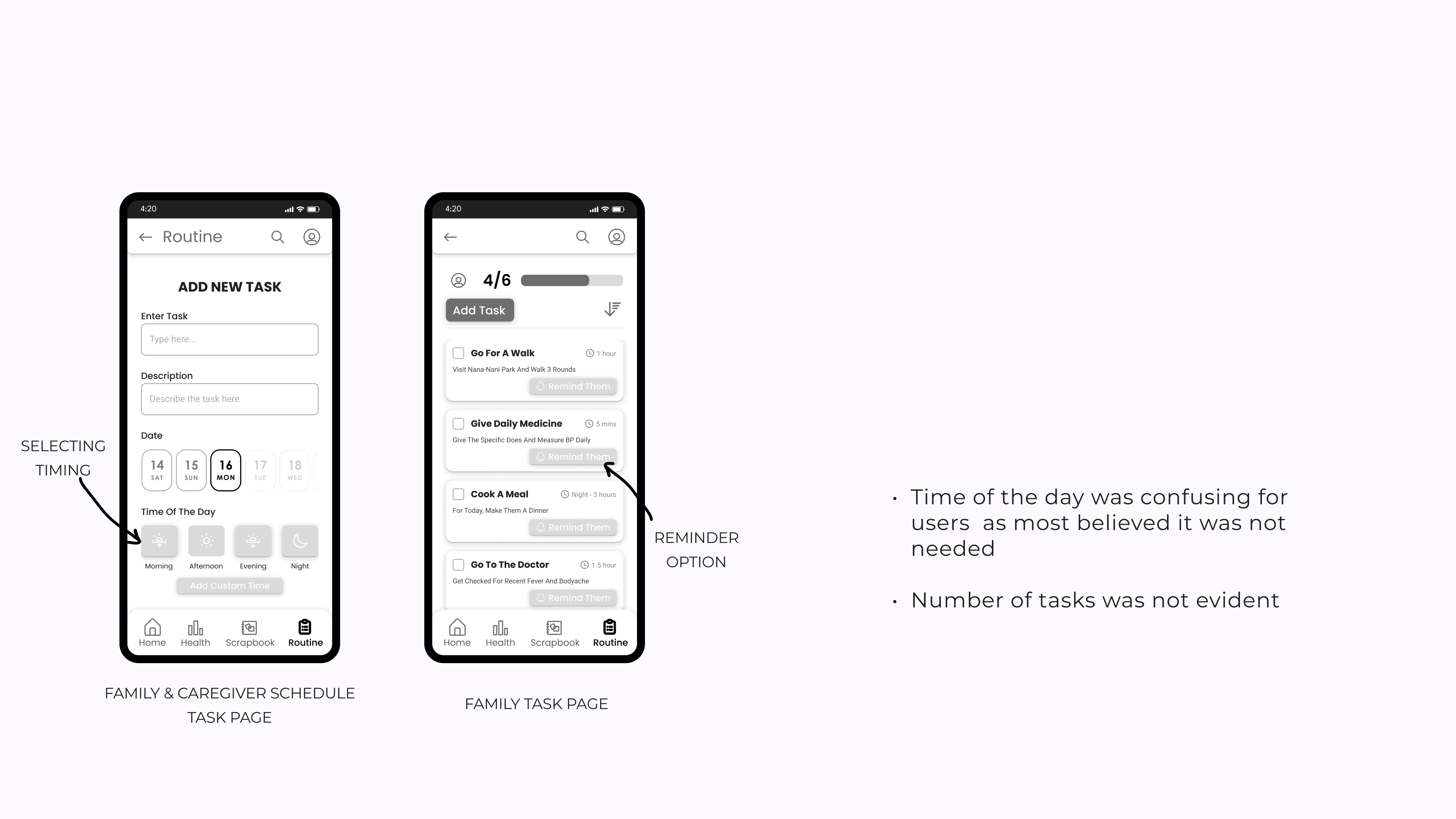 Mid fidelity app screens